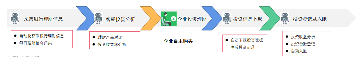 浙江保融科技股份有限公司以往企业的投资台账由财务部门手工生成。首先登录多个银行系统,手工查询每银行理财产品数据;最后,将查询到的数据汇总处理后,进行理财产品对比和投资收益率分析。长时间重复、繁琐的工作,一方面消耗大量的人力资源,另一方面手工处理的工作效率不高。